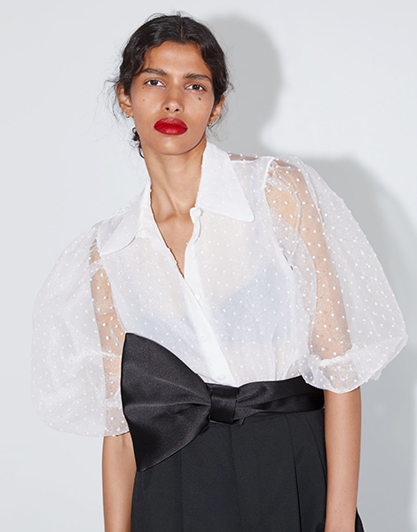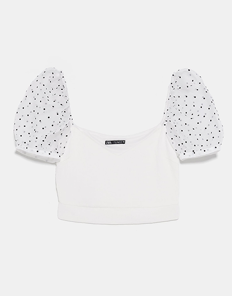 Kombiniert werden die zarten Tops von Fashionistas wie Influencerin Xenia Adonts im Stilbruch zu weiten Jeanshosen, oder elegant, zu engen fließenden Röcken. Muster, wie zum Beispiel süße Pünktchen, geben den Puffärmel-Pieces einen modernen 60ies Vibe.